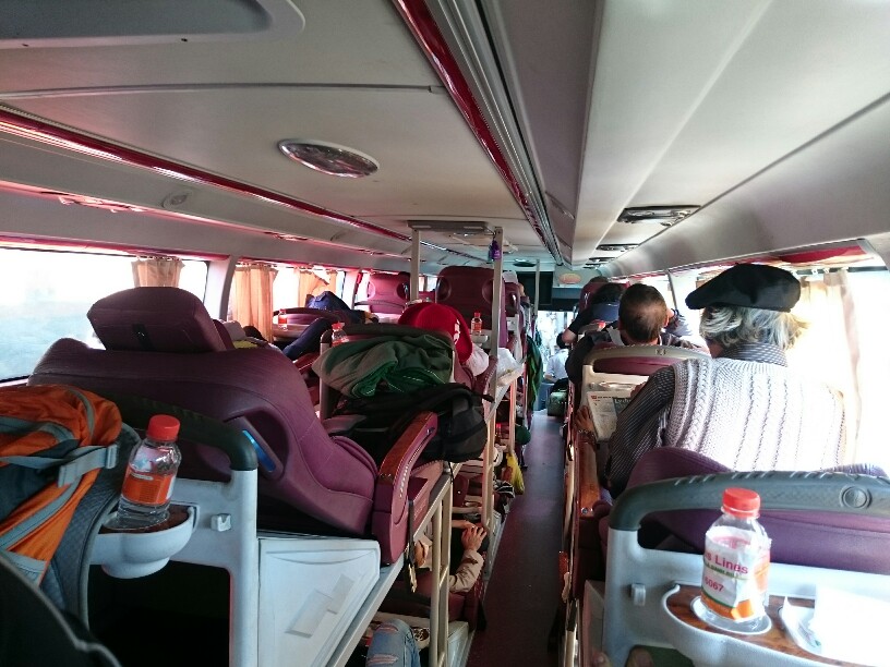 Wieder Bus gefahren. In Asien wird ja gerne mit Platz ökonomisch umgegangen, in den Bussen werden die die Leute z.B liegend übereinander transportiert.